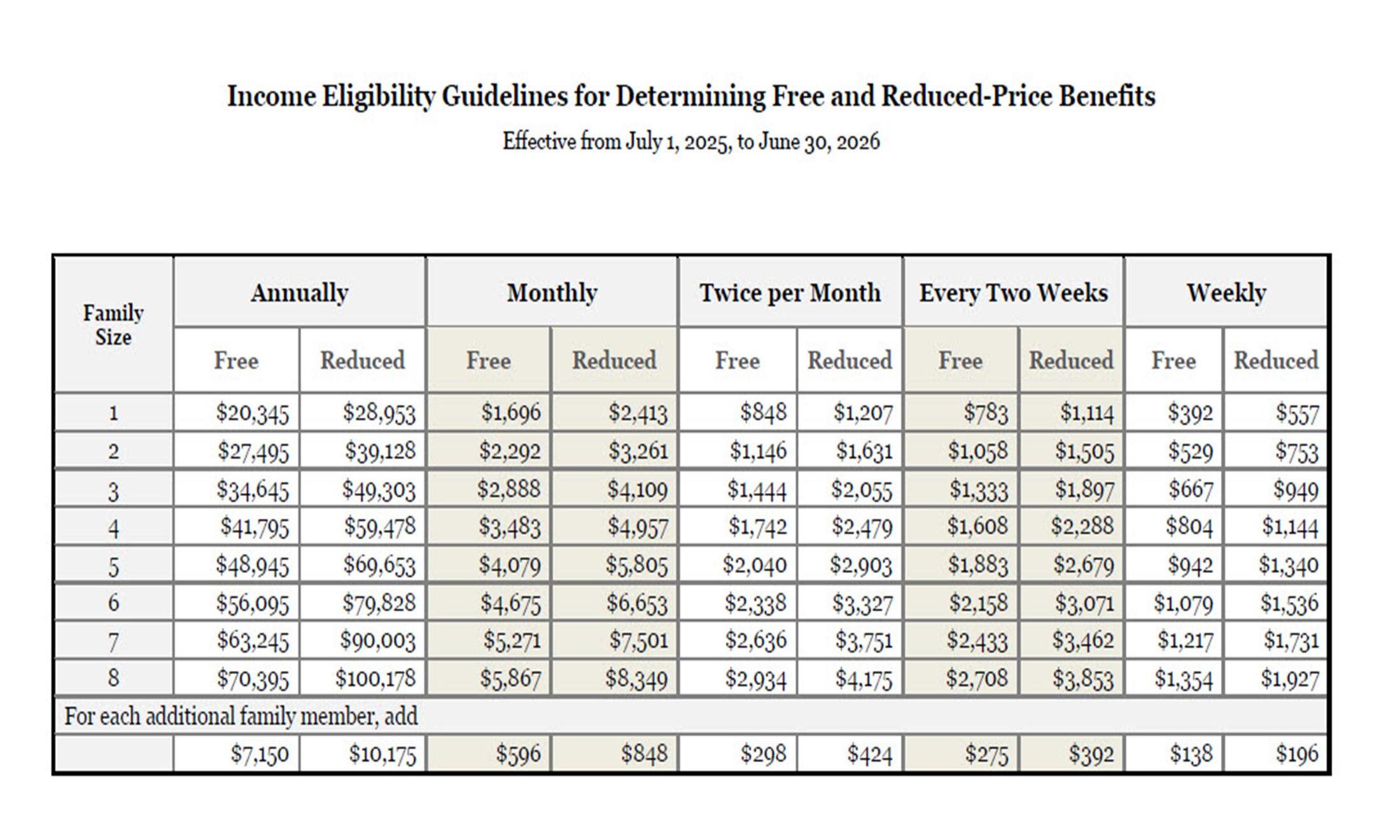 Income Eligibility Chart- Click HERE to see if you may qualify for Free/Reduced meals